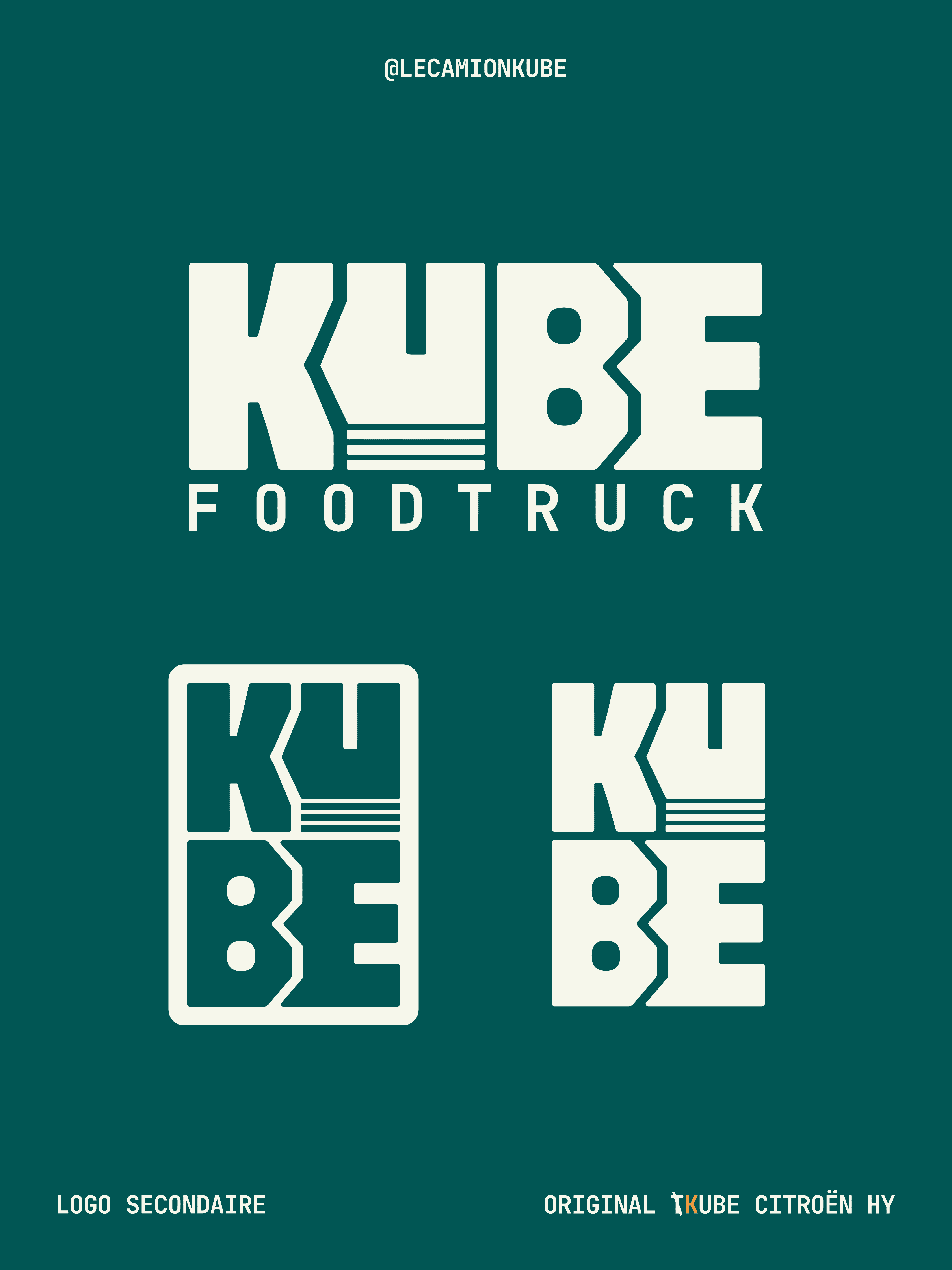 Le Camion KUBE est un foodtruck proposant une cuisine maison, accessible et savoureuse, avec une forte volonté de proximité. L’objectif du projet : construire une identité visuelle forte, chaleureuse et immédiatement reconnaissable, qui incarne autant la mobilité du camion que la personnalité de ses fondateurs.