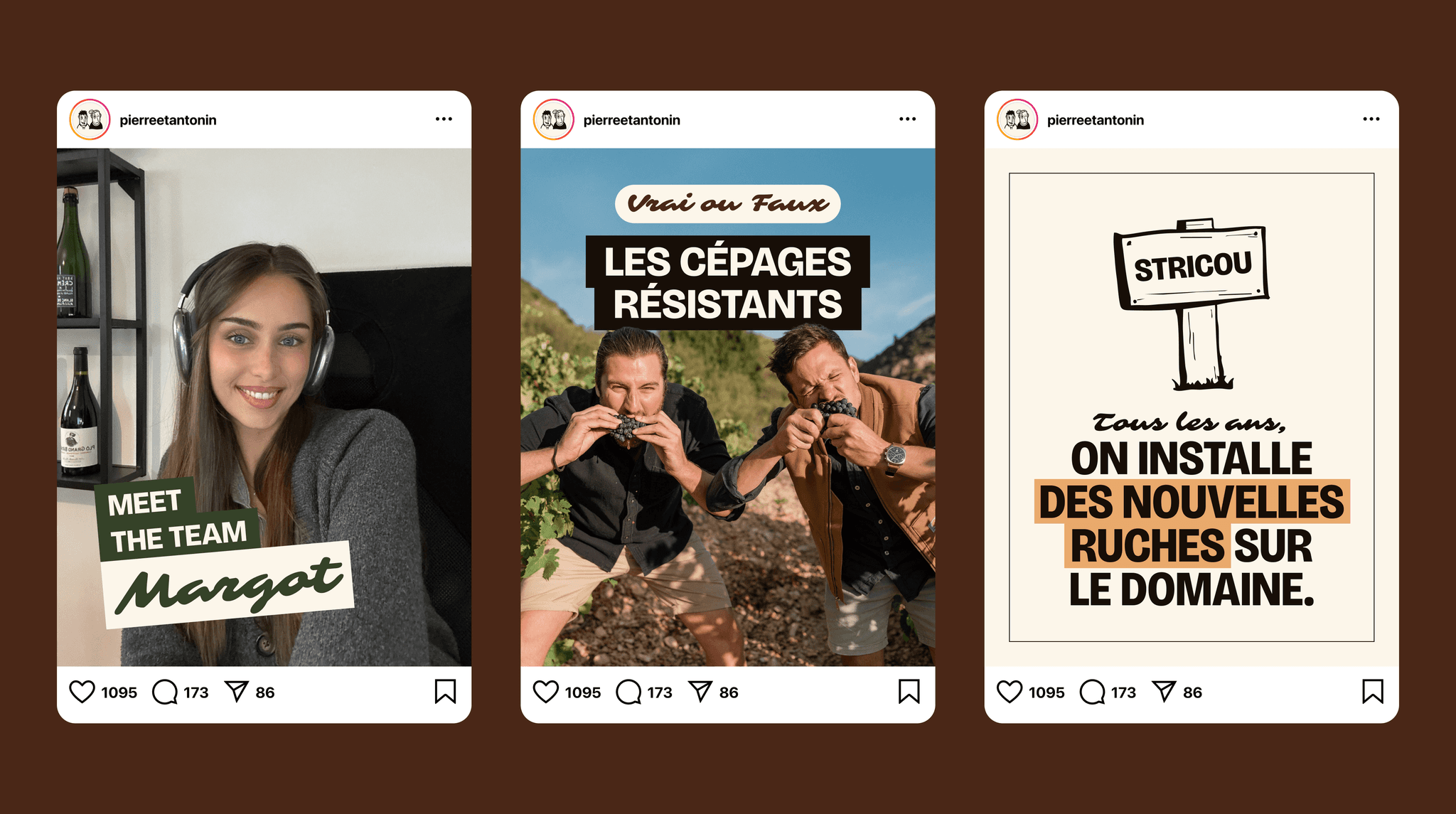 Aux côtés de Matthieu Hoogeboom, nous avons repensé l’ensemble de leur direction artistique : typographies, palette chromatique, mise en page, ton éditorial et expérience digitale. Le résultat : une identité rafraîchie, harmonieuse et déclinable, qui redonne du sens à chaque bouteille signée Pierre & Antonin.